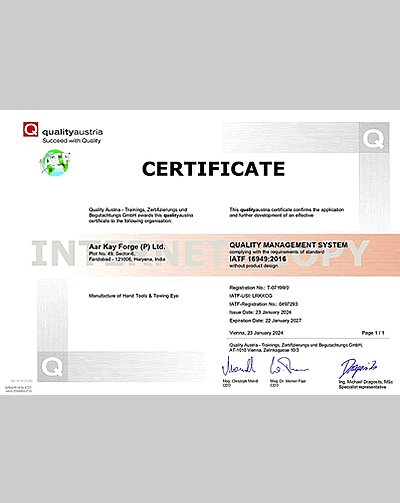 Quality of products & services is assured through rigorous implementation, effective monitoring & continuous update of fully certified IATF 16949: 2016 system.